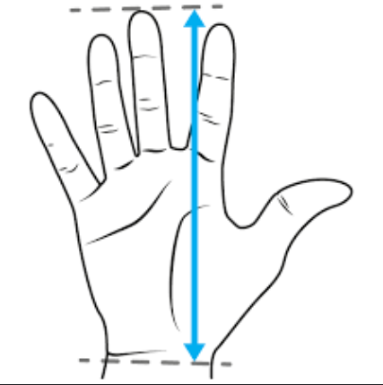 Opomba: Izmerite si dlan in tako boste vedeli izbrati pravo velikost. Meri se od koca zapestja oz. začetek dlani in do vrha sredinskega prsta (glejte sliko). Toleranca 1 cm. Za pomoč nas lahko kontaktirate na mail.