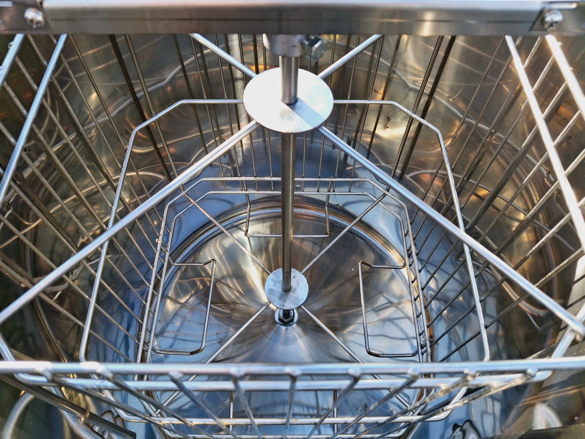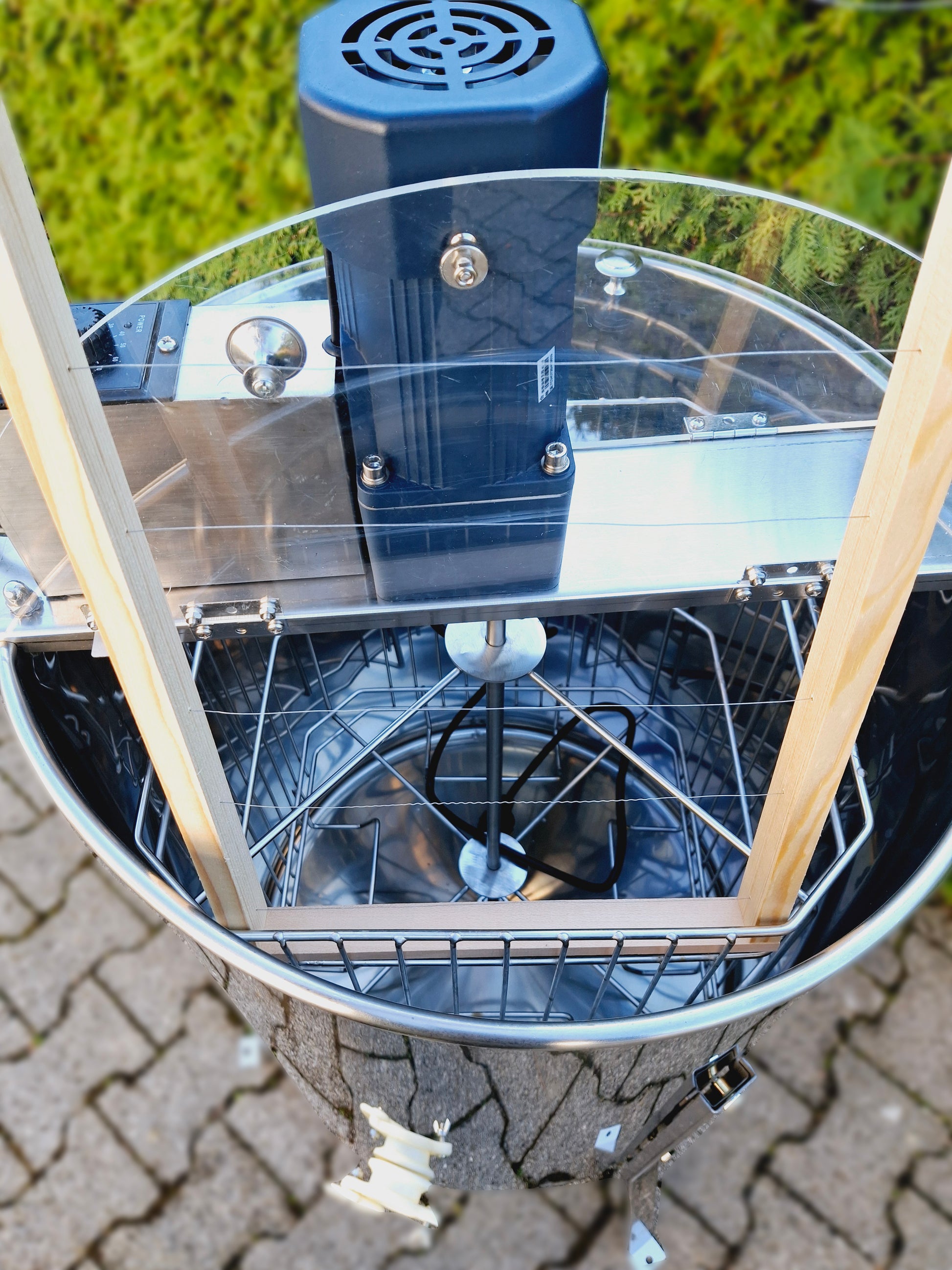 Enostaven za uporabo! Samo vstavite okvirje panjev AZ, DB ali LR, prilagodite hitrost in postopek se prične. V primerjavi s težkimi motoriziranimi centrifugami za med je lažja in priročnejša za uporabo.